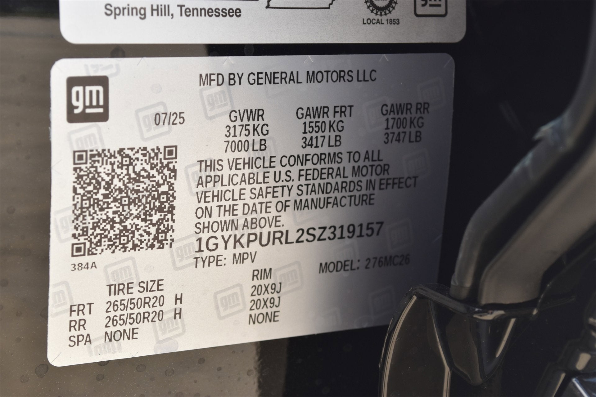 This 2025 Cadillac LYRIQ Sport is loaded with the following Factory Options:Floor Liner Package (Contoured Floor Liners and Integrated Cargo Liner), Preferred Equipment Group 1SF, 4-Wheel Disc Brakes, 6-Way Power Front Passenger Seat Adjuster, 7 Speakers, 7-Speaker Audio System Feature, 8-Way Power Driver Seat Adjuster, ABS brakes, Air Conditioning, Alloy wheels, AM/FM radio: SiriusXM with 360L, Apple CarPlay/Android Auto, Auto High-beam Headlights, Auto-dimming door mirrors, Auto-dimming Rear-View mirror, Automatic temperature control, Brake assist, Bumpers: body-color, Compass, Delay-off headlights, Driver 4-Way Power Lumbar Seat Adjustment, Driver and Front Passenger Heated Seats, Driver door bin, Driver vanity mirror, Dual front impact airbags, Dual front side impact airbags, Dual Motor AWD, Electronic Stability Control, Emergency communication system: OnStar and Cadillac connected services capable, Four wheel independent suspension, Front anti-roll bar, Front Bucket Seats, Front Center Armrest, Front dual zone A/C, Front License Plate Bracket, Front Passenger 4-Way Power Lumbar Seat Adjustment, Front Passenger Seat Memory, Front reading lights, Fully automatic headlights, Garage door transmitter, GM PowerUp 2 Charger, Google Built-in, Heated door mirrors, Heated front seats, Heated steering wheel, Hitch Guidance with Trailering Assist Guideline, Hitch View, Illuminated entry, Inteluxe Seat Trim, Knee airbag, Leather steering wheel, Low tire pressure warning, Memory seat, Navigation system: Google Automotive Services Capable, Occupant sensing airbag, Outside temperature display, Overhead airbag, Overhead console, Panic alarm, Passenger door bin, Passenger vanity mirror, Power door mirrors, Power driver seat, Power Liftgate, Power passenger seat, Power steering, Power windows, Premium Suspension, Radio data system, Rain sensing wipers, Rear anti-roll bar, Rear reading lights, Rear seat center armrest, Rear window defroster, Remote keyless entry, Security system, SiriusXM with 360L Trial Subscription, Speed control, Speed-sensing steering, Split folding rear seat, Spoiler, Steering wheel memory, Steering wheel mounted audio controls, Telescoping steering wheel, Tilt steering wheel, Traction control, Trip computer, Turn signal indicator mirrors, Variably intermittent wipers, Wheels: 20 Dynamic 12-Spoke Alloy, and Wireless Apple CarPlay/Wireless Android Auto.