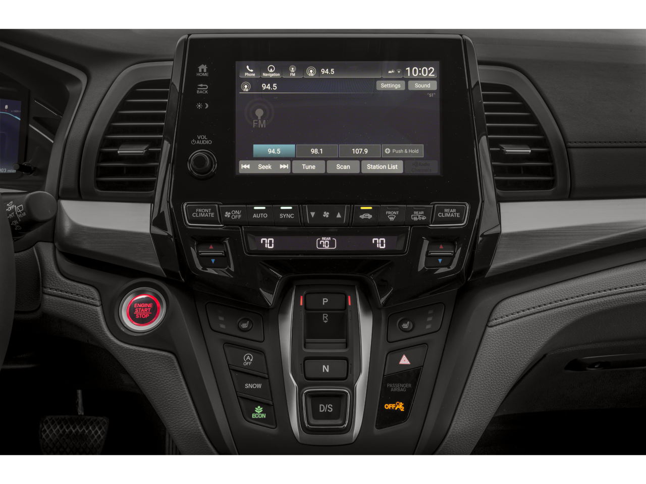 - Radio: 160-Watt AM/FM/HD/SiriusXM Audio System -inc: 6 speakers, subwoofer, multi-zone audio, Honda satellite-linked navigation system w/voice recognition and Honda HD digital traffic, Bluetooth® HandsFreeLink, Bluetooth® streaming audio, MP3/auxiliary input jack, radio data system (RDS), SMS text message function, 2.5-amp USB audio interface port in front, 2.5-amp USB charging port in center console, 2 2.5-amp USB charging ports in second row, CabinControl remote compatibility, 8" display audio w/high-resolution (720P) electrostatic touch-screen and customizable feature settings, Apple CarPlay/Android Auto, HondaLink subscription services, mobile hotspot capability, illuminated steering wheel-mounted audio and navigation controls and body-colored fin-type roof-mounted antenna