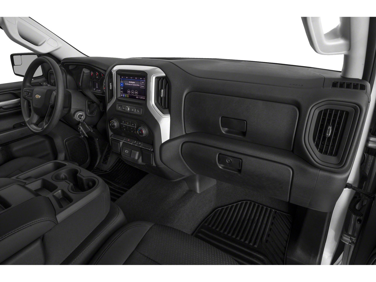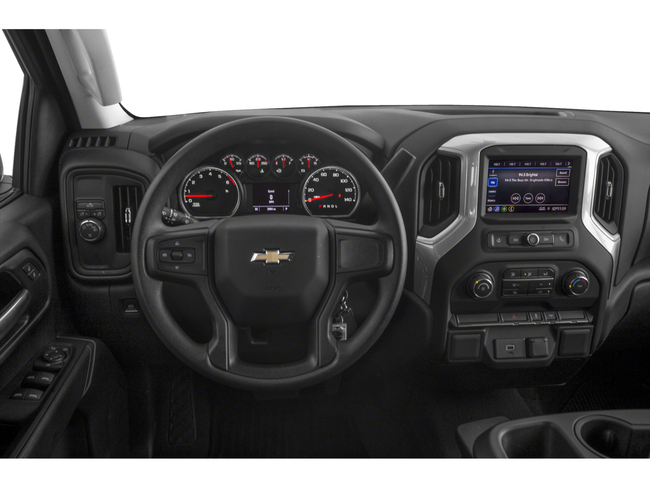 This truck features the Custom Convenience and Custom Value Packages, adding practical upgrades such as dual 120-volt power outletsone bed-mounted for jobsite tools and one in the cabin for devicesplus remote keyless entry, premium Chevrolet Infotainment 3 audio, and SiriusXM radio. Split folding rear seats, a rear window defroster, and power windows maximize comfort and utility, while the body-color bumpers and black bowtie emblems offer a bold, custom look.